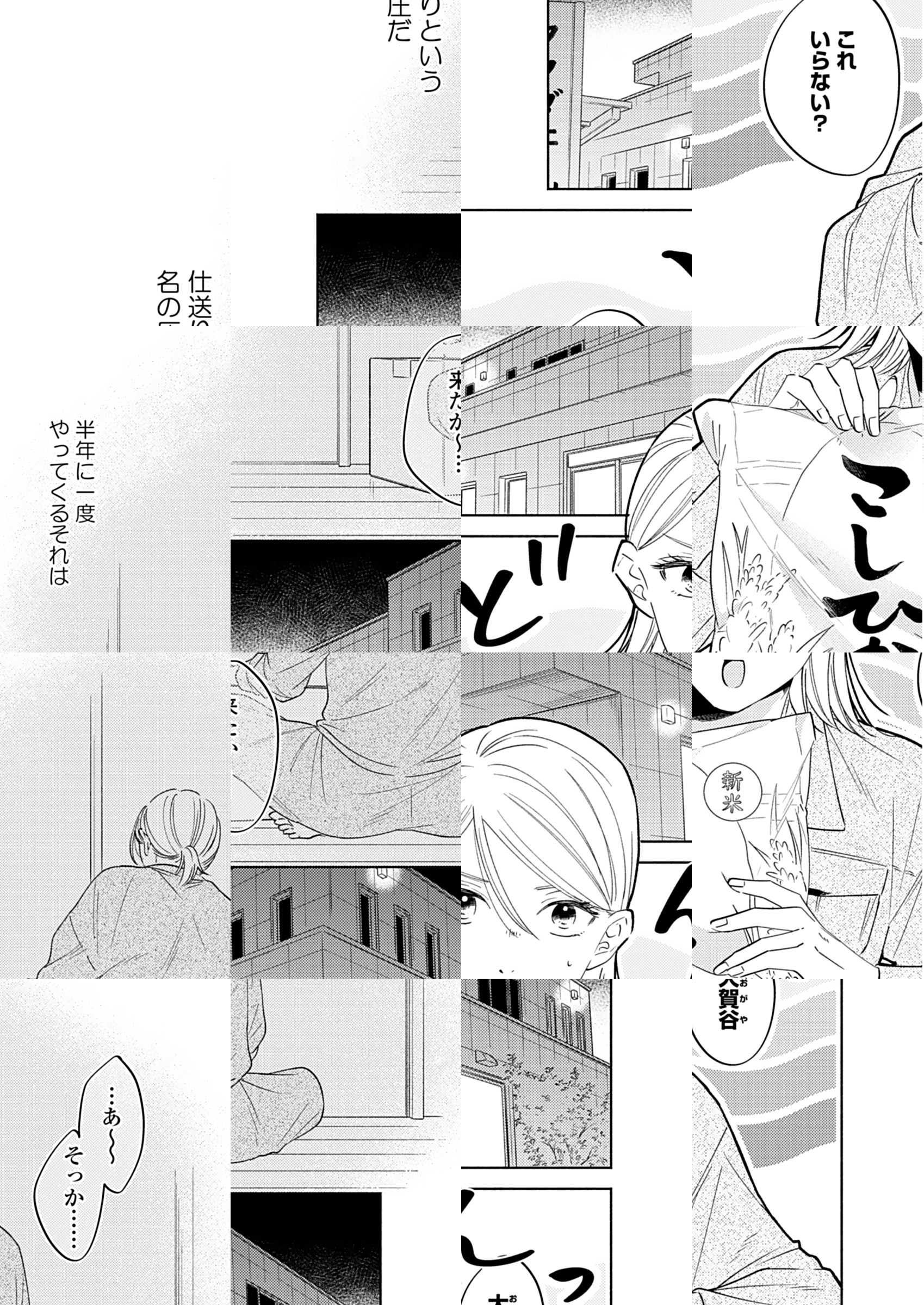【毎月第1木曜更新!最新2話無料!!】牛乳配達会社で働く小武奈々は、1人でご飯を食べることが苦手。なのに同棲している恋人はだんだん家に帰ってこなくなり、がらんとした部屋で出来合いのご飯を食べる日々。残業も続くそんな中、疲れが滲む小武を見かね同じく残っていたちょっぴり堅物な後輩・大賀谷が一緒にご飯を作らないかと提案してきて…!? 何を食べるか、誰と食べるか。ご飯を通じて“淋しさ”と向き合うグルメ×ラブ!