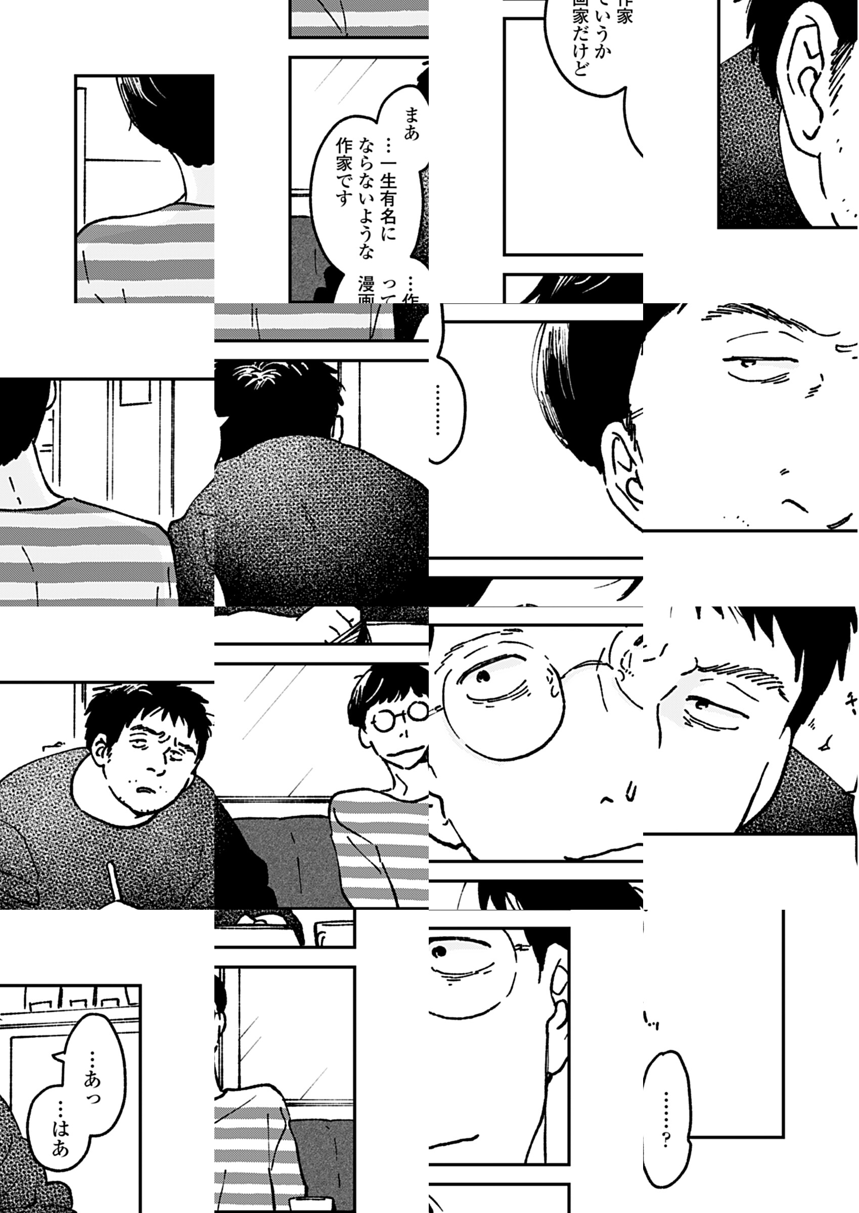 【毎週更新!】スランプの小説家は、「命も魂も売る」とまで思い詰めた際に出会った謎の男と、創作論を交わしていた。リアリティや既存のお約束、気になることが多すぎて筆はいっこうに進まない…!そのほかブラック環境下のテストニッターや、軽薄なマチアプ男、死体を抱えた女の運命が交差していく。奇妙な連鎖が彼ら全員を巻き込んでいくサスペンス群像劇!